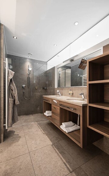 ca 40 m² inkl. 8 m² Balkon zur Westseite, im einzigartigen ALPIANA Design mit Eichenholz-Fußboden, Blick in die Natur, Dusche, mit Balkon, Flat-TV, Safe, Mini-Bar mit Südtirol-Produkten, übergroßes Doppelbett.