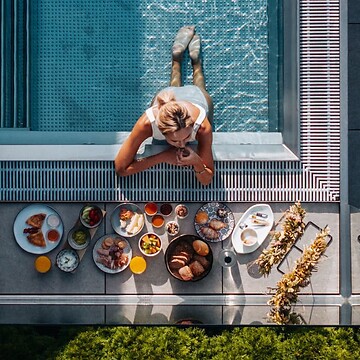 • Breakfast in the Pool – euer ganz privates, exklusives Frühstücksbuffet am Rand unseres Infinity Whirlpools auf der Dachterrasse