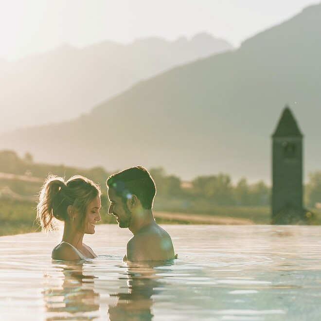 Ein romantisches Wochenende verspricht in Südtirol Tage, in denen die Zeit stillzustehen, die Welt vergessen scheint. In denen alles andere verschwimmt, Sie nur noch Augen füreinander und das Schöne haben. Denken Sie an die lieblichen Obsthaine des Vinschgaus, an die grüne Weite des Meraner Lands, dann werden Sie für immer an Ihren Lieblingsmenschen denken.
