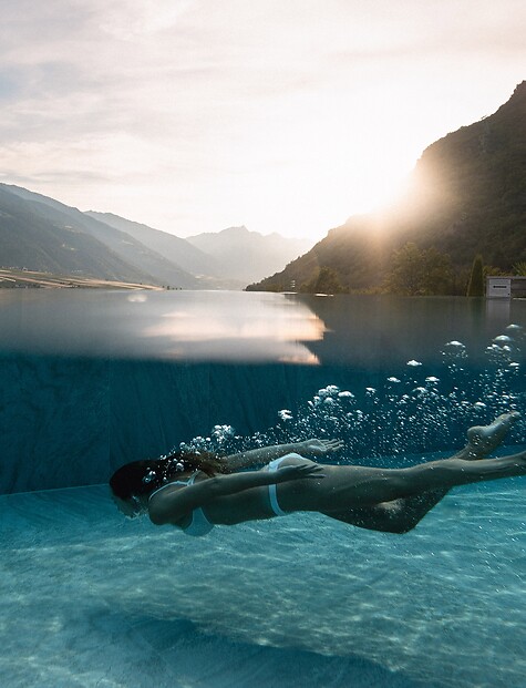 Außergewöhnliche Hotels mit außergewöhnlichen Pools im Vinschgau & bei Meran.