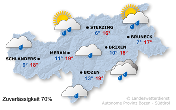Hier sehen Sie die aktuellen Wettervorhersagen für Ihren Urlaub in Südtirol!