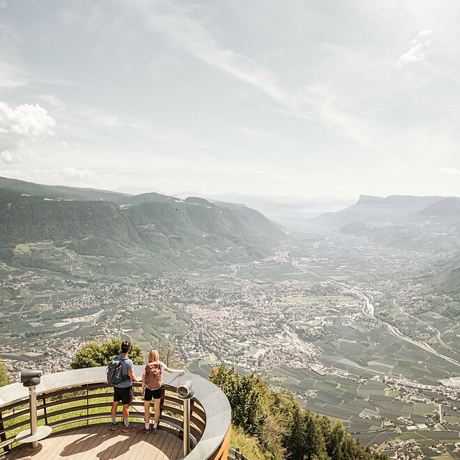 Embark on a scenic circular hike at Vigiljoch, where a ride on the cable car brings you to a hiking paradise at 2,000m, offering breathtaking 360° panoramic views.