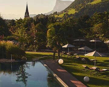 Indulge in a personal time-out surrounded by nature, where the Mediterranean pool garden and the Sky Spa ALCIELO open up to breathtaking views of the Dolomites - a perfect retreat to relax, recharge and reconnect with the natural beauty around you.