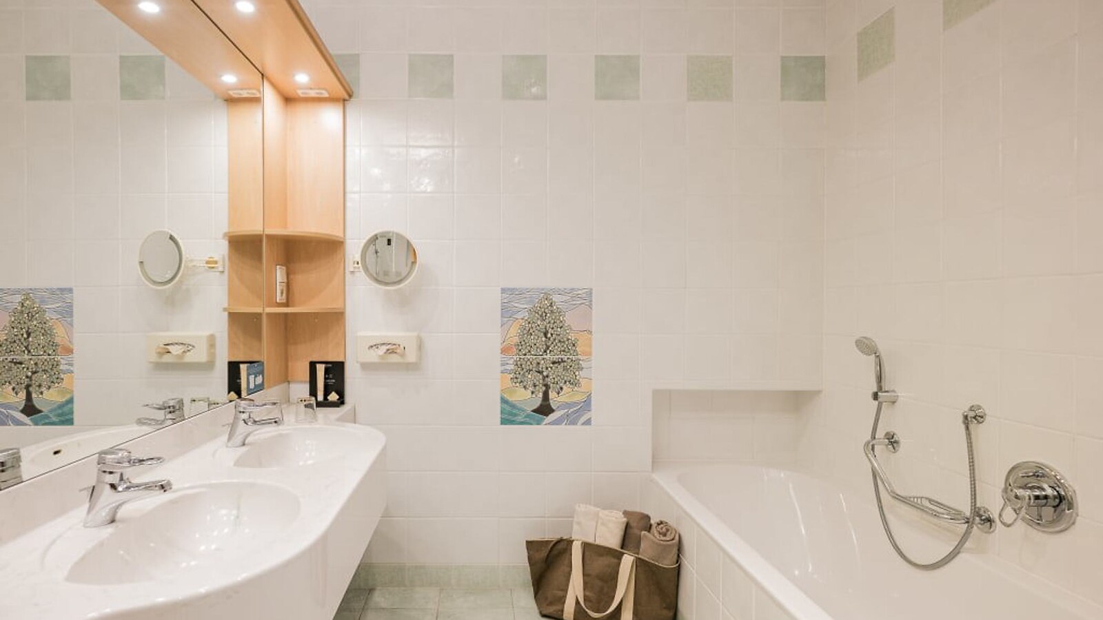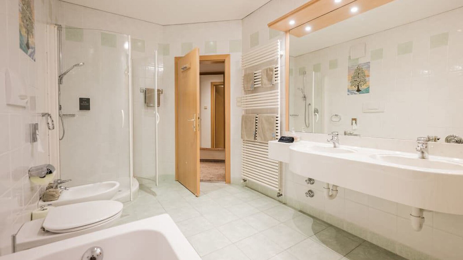 approx. 88 m² incl. 40 m² terrace for 2 - 4 people, suite in country house style on the 5th floor, bedroom with separate living room, couch and seating area, bathroom with bathtub, shower and bidet, flat-screen TV, free Wi-Fi, minibar, safe, 40 m² south-facing terrace with panorama bio & Finnish sauna, plunge pool, parking space in the garage