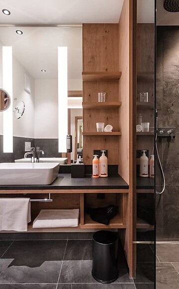 ca. 23 m² - Single room with a french bed (1.40 m), wooden floor and a panoramic balcony with the morning sun and a magnificent view. Bathroom with shower, wash basin, WC, make-up mirror and hairdryer. Safe, TV, WIFI and minibar.