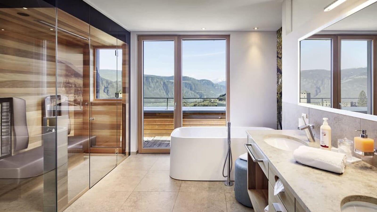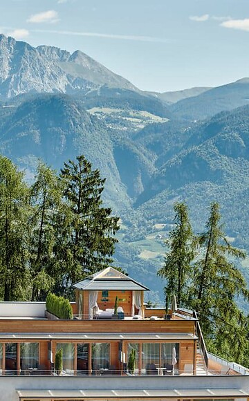 120 m² inclusive 15 m² terrace and 40 m² rooftop terrace on the 3d floor, in unique Alpiana design with oakwood floors, private infrared sauna and large luxury bathroom with shower and separate WC, private terrace on the 4th floor with relax area and a pavillon for sleeping under the stars, breathtaking views of the mountains and surrounding greenery. Large pergola terrace with lounge furniture, flat-screen TV, safe, mini bar with South Tyrolean products, king-size luxury bed, private parking space in garage included