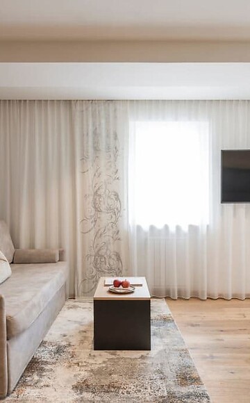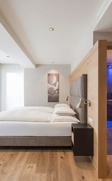 Più spazio per le coccole e per sentirsi a proprio agio. Con un accogliente angolo soggiorno, pavimento in legno, mobili in legno naturale, bagno moderno con grande doccia walk-in, WC separato (senza bidet), frigobar, cassaforte, flat screen TV, telefono, WIFI gratuito, balcone rivolto a nord, posto garage e aria condizionata.