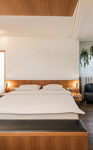 ca. 40 m² incl. 13 m² di balcone per 2 persone, camera moderna e accogliente, pavimento in legno, tavolo con sedie, bagno con doccia, in parte con vasca, bidet, ampio balcone con vista sulla Val Venosta, TV a schermo piatto, Wi-Fi gratuito, minibar, cassaforte, posto macchina in garage