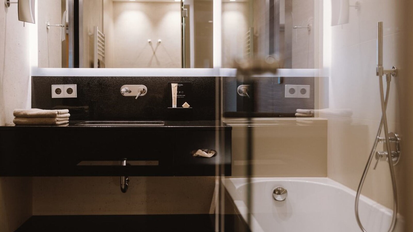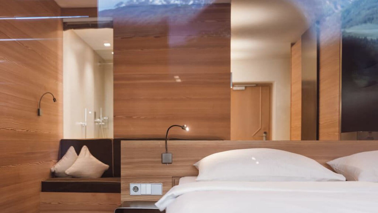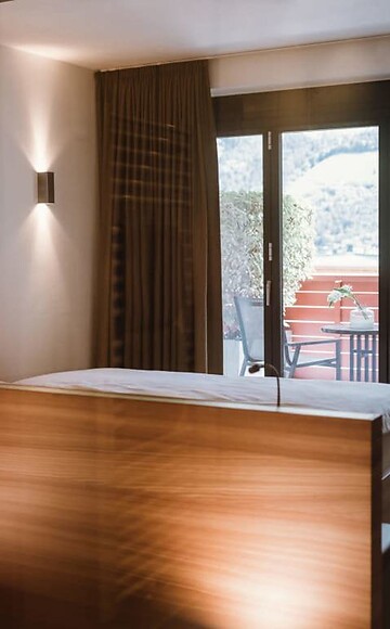 ca. 43 m² incl. 10 m² di balcone per 2 - 3 persone, camera accogliente e moderna, letto su rotelle con possibilità di dormire all’aperto, pavimento in legno nella camera da letto, morbido tappeto nell’ingresso, bagno con vasca, doccia, bidet, TV a schermo piatto, Wi-Fi gratuito, minibar, cassaforte, balcone esposto a sud, posto macchina in garage – animali non ammessi