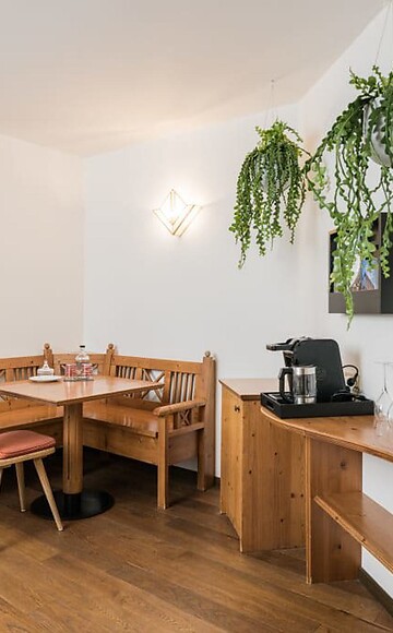 ca. 88 m² incl. 40 m² di terrazza per 2 - 4 persone, suite in stile casa di campagna al quinto piano, zona giorno e zona notte separate, divano e tavolo con sedie, bagno con vasca, doccia e bidet, TV a schermo piatto, Wi-Fi gratuito, minibar, cassaforte, terrazza esposta a sud di 40 m² con sauna bio-finlandese panoramica, vasca immersione, posto macchina in garage